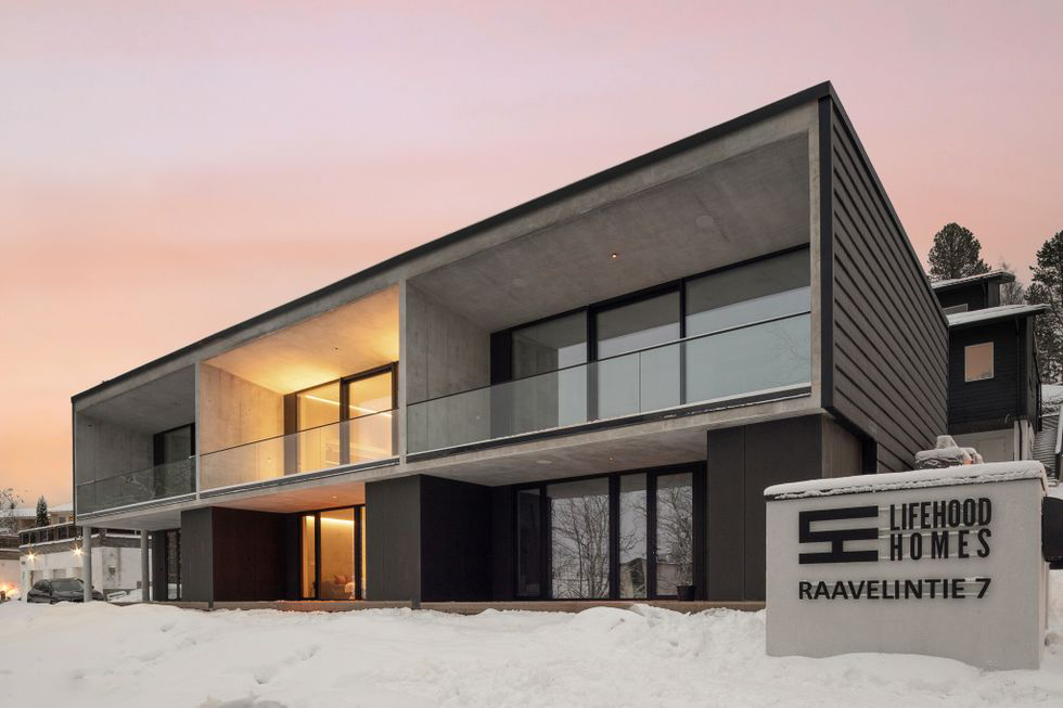 Arkkitehti Juha Klemetti suunnitteli HIGH END -luomuksen osoitteeseen Räävelintie 7 B, Espoo. Talon runko on toteutettu kokonaan betonista paikallavaluna, mikä mahdollisti upeiden betonipintojen luomisen.